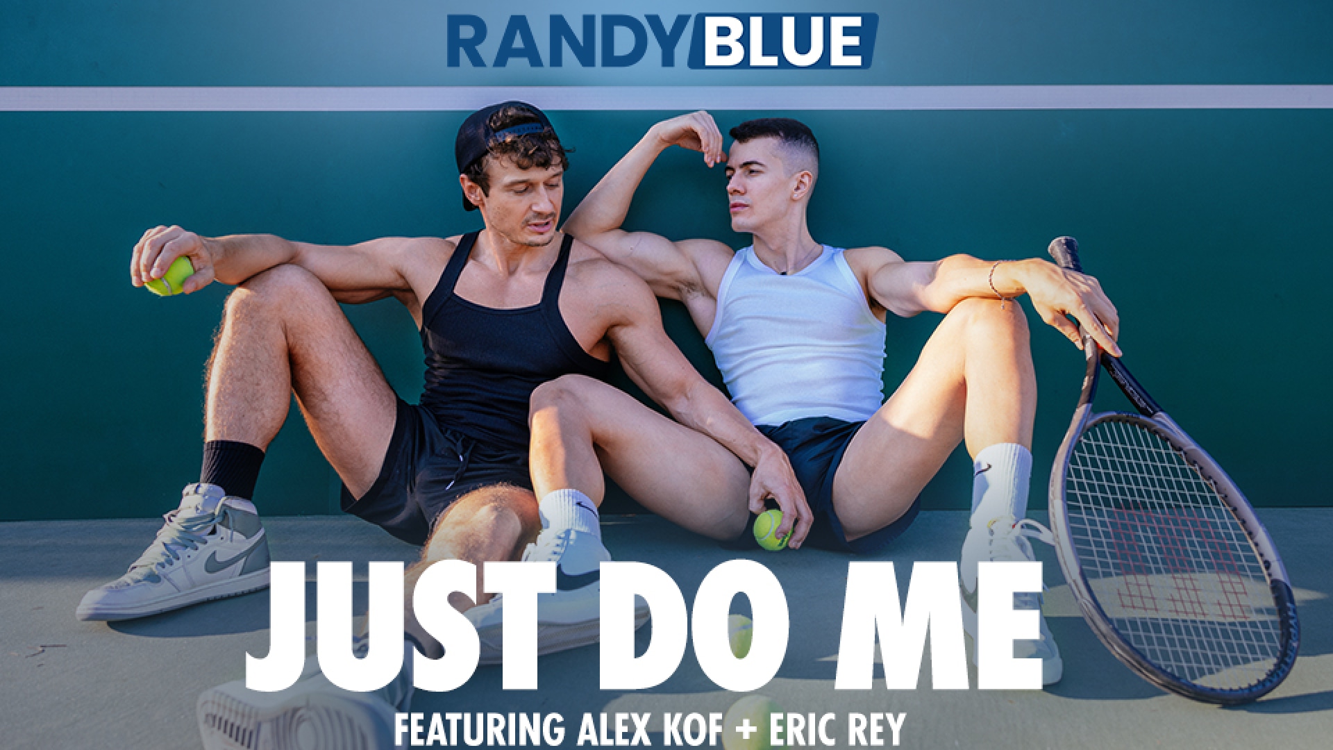 Alex Kof gives some tennis lessons To Eric Rey, but it's after their match when they get a good workout. The guys don't even need any down time after tennis: they go right into kissing and playing with their muscles and just like that Eric swallows Alex's cock and balls. Alex then gets to eat out Eric's perfect ass and when he fucks him he learns Eric needs NO coaching on taking dick!